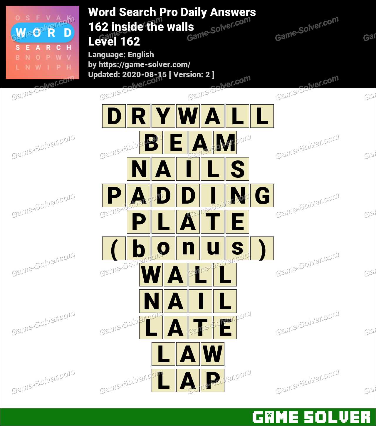 Word Search Pro 162 Inside The Walls Answers Game Solver